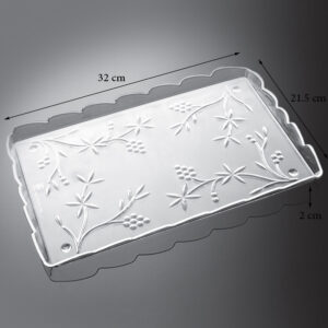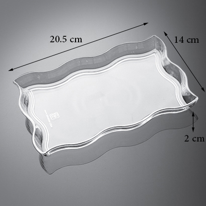 - سینی چندبار مصرف شفاف و براق: سینی کریستالی با ظاهری شفاف و درخشنده، جلوهای شیک و لوکس به پذیرایی شما میبخشد. این سینیها بسیار سبک و ظریف هستند و به راحتی قابل حمل و جابجا میباشند.