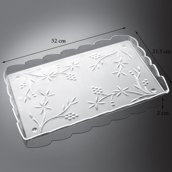 - مناسب برای سرو انواع خوراکی و نوشیدنی: سینی کریستالی در اشکال گرد و چهار گوش و در سایزهای مختلف موجود است و برای سرو انواع میوه، نوشیدنی، دسر و … در مهمانیها، مجالس و مصارف خانگی مناسب است.